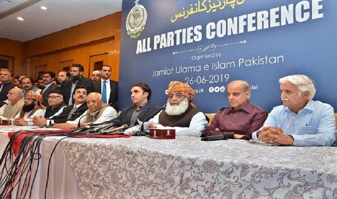 In a day-long multiparty conference held here in Islamabad, members of opposition parties including the PPP, Pakistan Muslim League-Nawaz (PML-N), Jamiat Ulema-e-Islam-Fazal (JUI-F), Awami National Party (ANP) and others mulled ways to launch a movement against the PTI-led government.