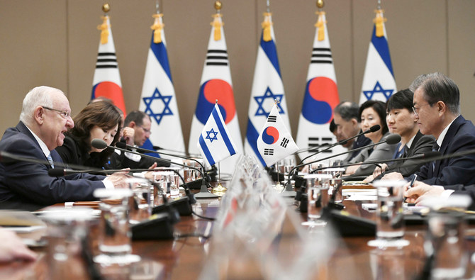 “Both South Korea and Israel faced catastrophic events after World War II, but we have built great nations and people, rising from the ashes of war,” the Israeli president said in a statement ahead of his talks with Moon.