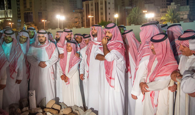 Crown Prince Mohammed bin Salman and other family members at the burial. (SPA)