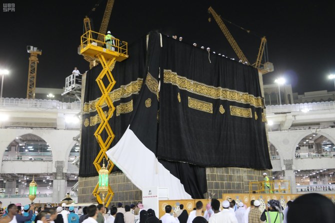 JEDDAH: In a tradition dating back centuries, a new black curtain, or Kiswa, is draped around the Kaaba in the Grand Mosque in Makkah once a year.