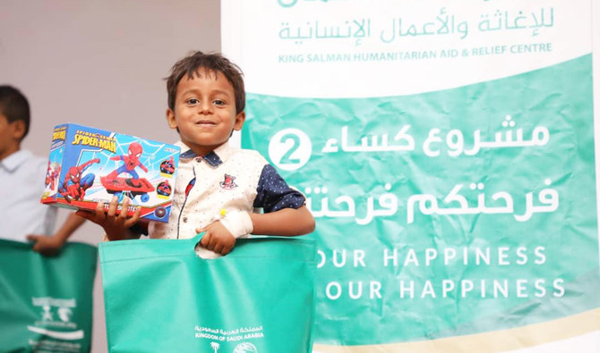 RIYADH: The King Salman Humanitarian Aid and Relief Center (KSRelief) distributed the Eid Kiswa (gifts) among children in Yemen as part of its Your Happiness is Our Happiness program in the war-torn country.