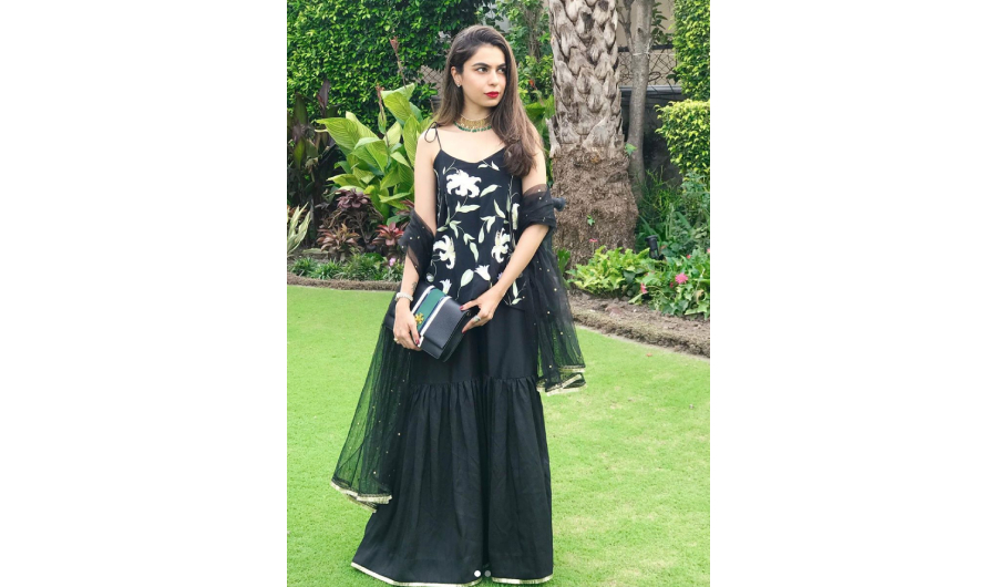 From touches of black to full-on, black was a striking choice for the hot Eid day by many people who have given evening’s staple color a day time twist. Actor Maya Ali wore a stunning and formal black and gold ensemble by designer Faiza Saqlain. Designer Sarah Cheema wore her own creation from her label Atelier de Frower, a black gharara (another trend revival) with a floral printed shirt and simple gold border.