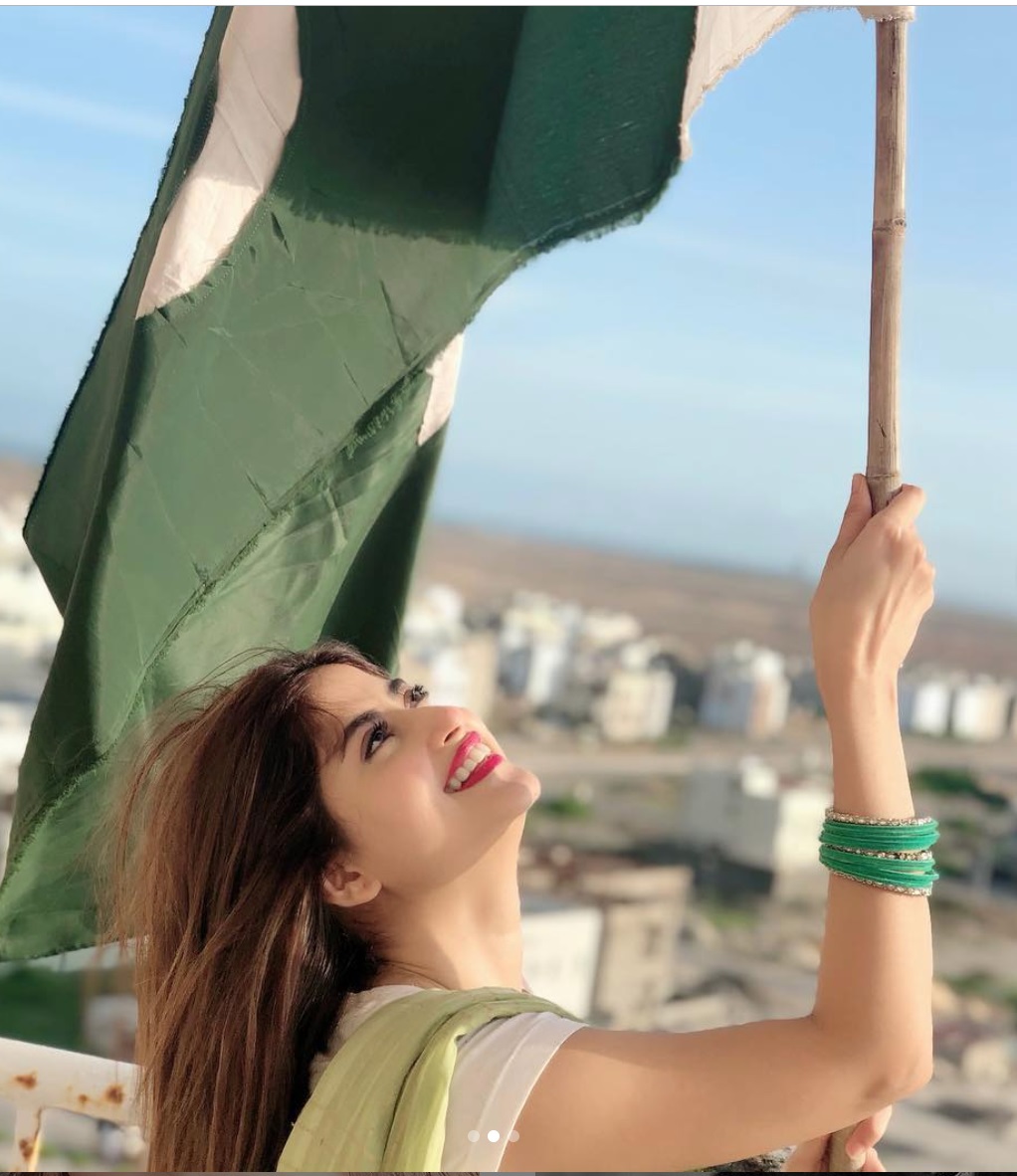 White suit, green dupatta, flag in hand, actor Minal Khan was a picture of patriotism.