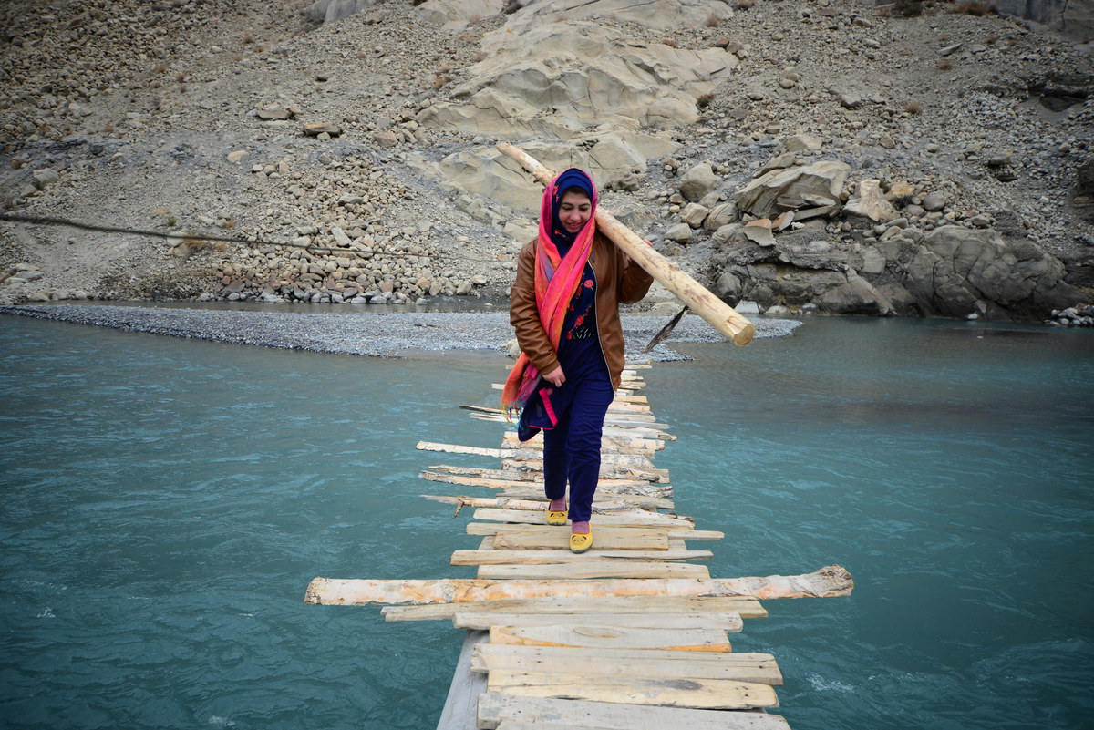 Most people avoid travelling to the mountainous Gulmit region, where winter temperatures can fall as low as minus-30. But I decided to go there to see the life of its residents during this extreme weather. The sub-zero temperatures are definitely harsh: It was so cold that once I spilled water indoors and in a minute it was all ice. The pipes are frozen, so water is collected from the river, which is also frozen and has to be broken. Because of this, some people have to use open-air toilets. Wood to make firesis collected almost around the clock. Yet in spite of all these tough times the local people look happy and content. I took this picture when Pari Sultana, a village girl, was crossing a narrow bridge, bringing wood from another settlement about 15-to-20 minutes away from her home. There is so much joy on her face that it does not look like a chore for her.