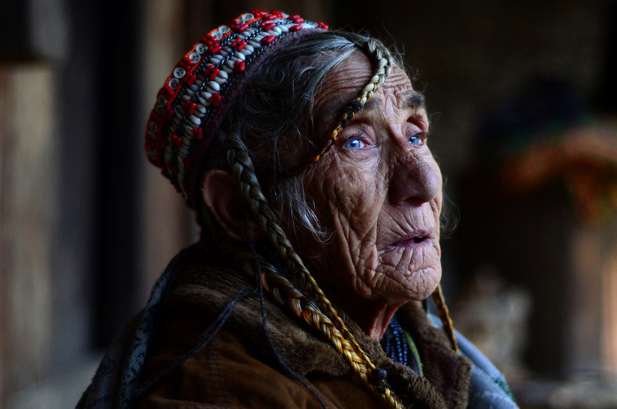 The Kalash people lead an isolated life in the mountainous regions of Chitral. Photographers around the world — including me — have been fascinated by their striking features and piercing blue eyes. On my first visit I went armed with some print outs of images of Kalash women who had been previously photographed by National Geographic. When I reached the village, I showed them to a local who took me to one of them. The memory of that first glimpse of Sichin Bibi Kalash still sends a chill down my spine. She had the most striking blue eyes, and I could see their color even from a distance. We did not converse much, as we spoke different languages, but she had a firm handshake and an intimidating presence. Her powerful aura is still strongly felt through her images.