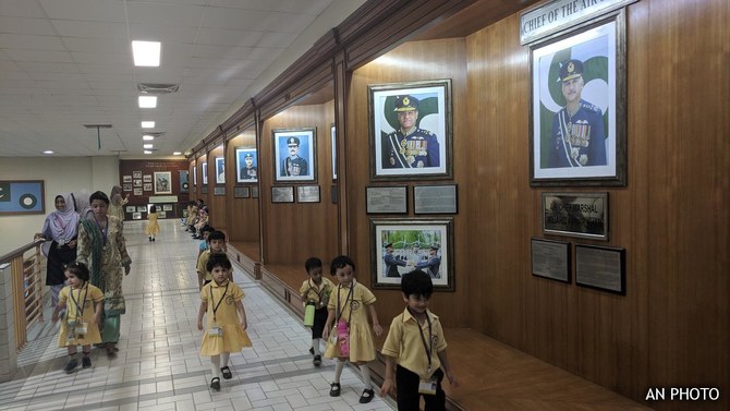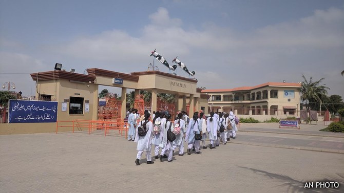 “It was a very informative visit. We saw aircrafts and much else and our teachers explained their significance to us,” Eman Kamran, a fifth grader, told Arab News as she posed with her friends for a picture next to Jinnah’s personal aircraft.