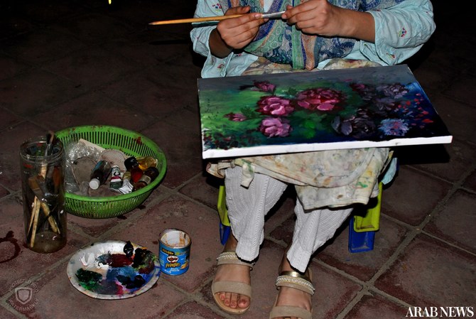 ISLAMABAD: Zarina Hassan sits in her terra cotta tiled porch in Islamabad with a canvas on her lap. On the floor next to her, in a neat sequence, lies red, blue and yellow paint. She says she always keeps them in that order, because it’s the only way she can tell which color to paint her roses.