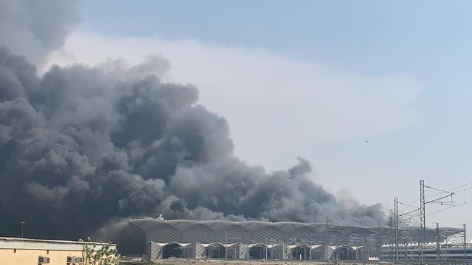 The fire erupted at 12:35pm on Monday according to the Haramain High-Speed Railway’s Twitter account. The Makkah governorate said that all train services were suspended until further notice and it urged passengers with tickets to call 920004433 for any settlements and inquiries.