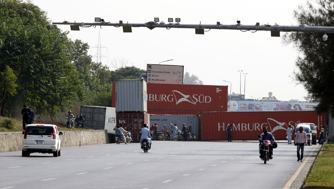 “In Pakistan, containers have three roles to play — as a stage to address the audience, providing housing facility to the leader and to block roads. The use is ... nearly two decades old,” Arif Nizami, President Council of Pakistan Newspapers Editors (CPNE), told Arab News.