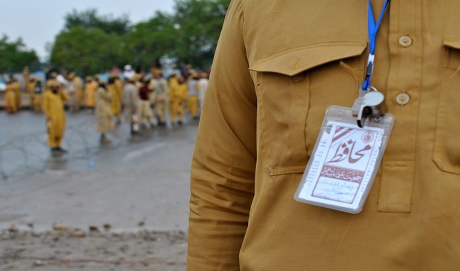 Workers of Ansar ul Islam a volunteer group of JUI-F at the venue. November 06, 2019 (AN Photo by Saba Rehman)