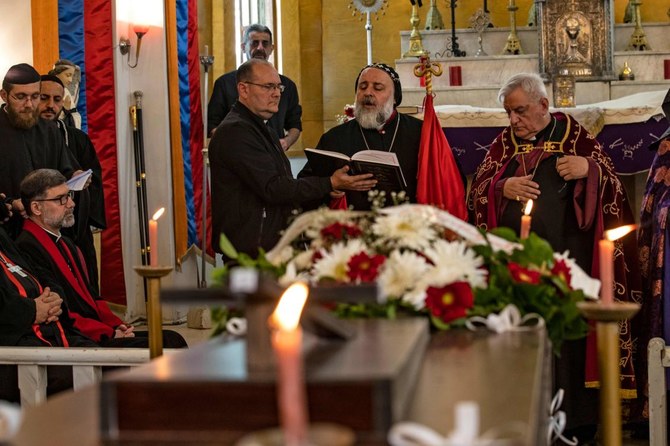 QAMISHLI: Dozens of mourners filled a church Tuesday for the funeral of an Armenian Catholic priest and his father killed by the Daesh group in northeastern Syria.