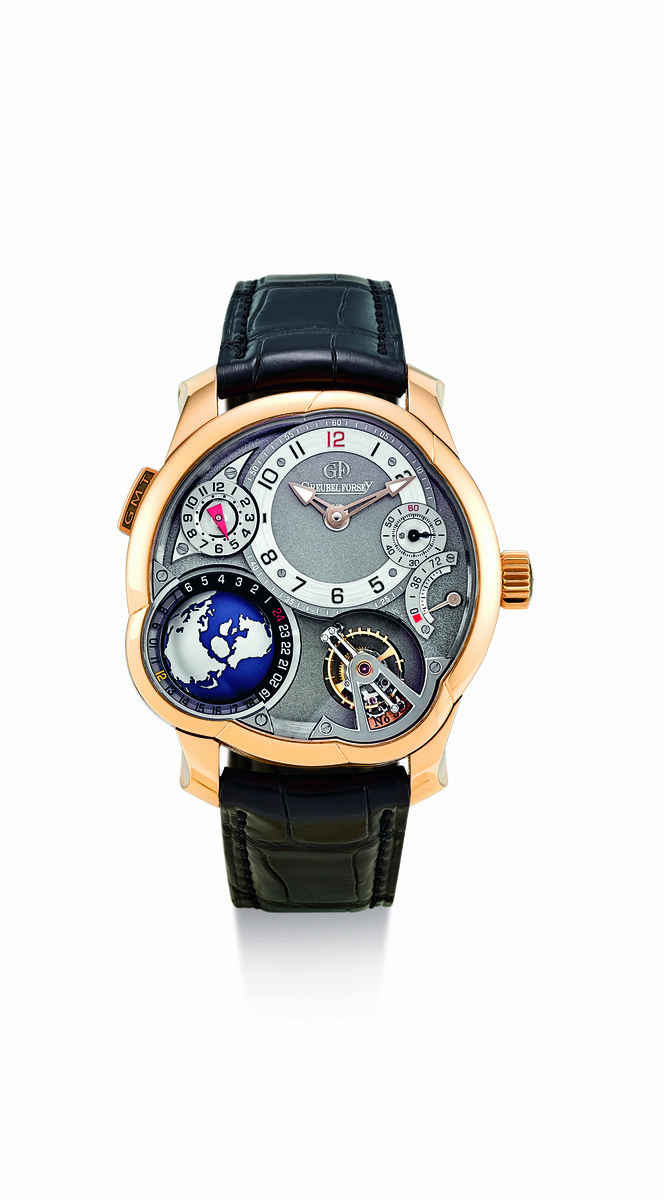 The piece de resistance is a highly complicated Greubel Forsey watch that displays the Earth. Supplied