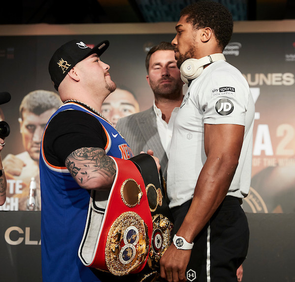 Ruiz Jr. entered the Riyadh conference wearing the same New York Knicks jersey he wore in the press conference ahead of their first fight six months ago, during which Joshua let Ruiz hold the championship belts.