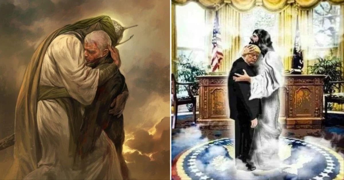 In response to the image, many Americans and pro-Trump supporters on social media circulated an illustration of Jesus embracing US President Donald Trump - in what seemed to end a Twitter tug-of-war of who actually owns Heaven.