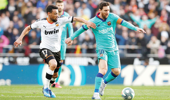 Gabriel thought he had a third after volleying in from a corner but VAR persuaded Manzano there had been a push. When Messi ballooned a late free kick into the stands, Valencia knew their win was secure.