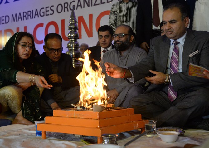 KARACHI: Dressed in colorful apparel, 80 Hindu couples, from across Pakistan’s Sindh province, vowed to honor their partners for life at a mass wedding in Karachi on Sunday.