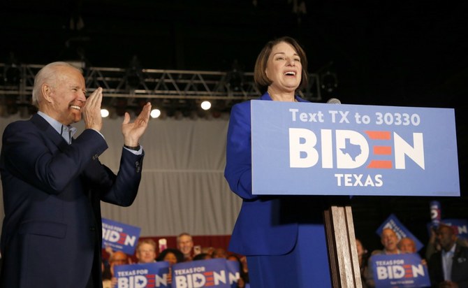 HOUSTON: Joe Biden’s presidential hopes received a huge shot in the arm Monday after former rivals Amy Klobuchar and Pete Buttigieg dropped out of the Democratic race and endorsed the former vice president ahead of the crucial Super Tuesday primaries.