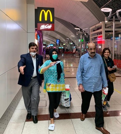 Pakistani nationals are walking through Dubai International Airport to leave on a special flight to Islamabad on March 23, 2020. (Photo courtesy: Pakistan Consulate General in Dubai)