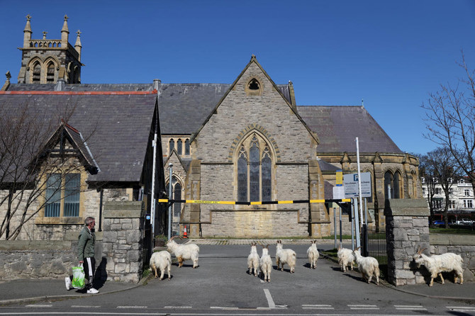 With humans sheltering indoors to escape the new coronavirus, mountain goats are taking advantage of the peace and space to roam in frisky clumps through the streets of Llandudno, a town in North Wales.
