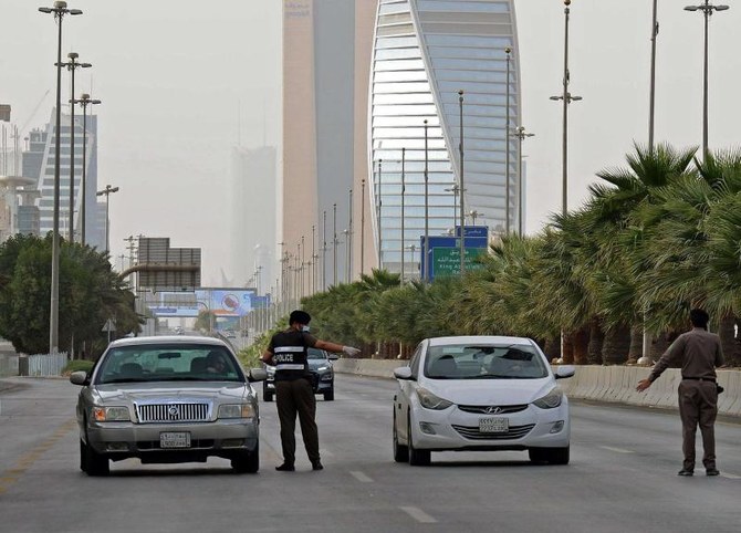Saudi policemen man a checkpoint in the King Fahd main street in the capital Riyadh. (AFP)