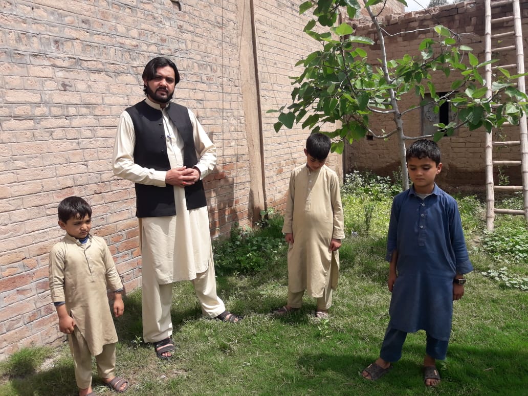 Dost Mohammad, who has recently recovered from coronavirus, with his children in Mardan, Khyber Pakhtunkhwa on April 6, 2020. (Photo Courtesy: Dost Mohammad)