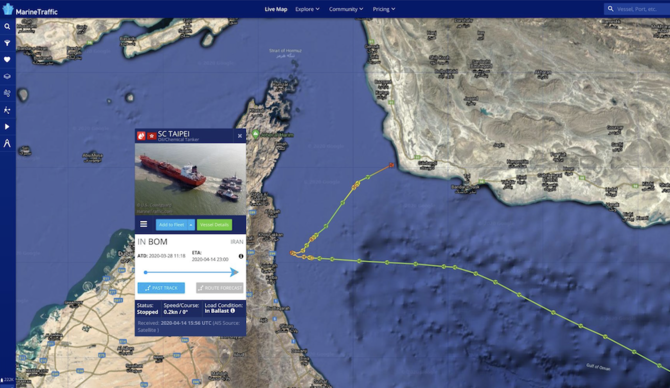 The SC Taipei’s last position on Wednesday was at anchor near to the United Arab Emirates with the UAE port of Fujairah listed as its destination, Refinitiv ship tracking data showed.