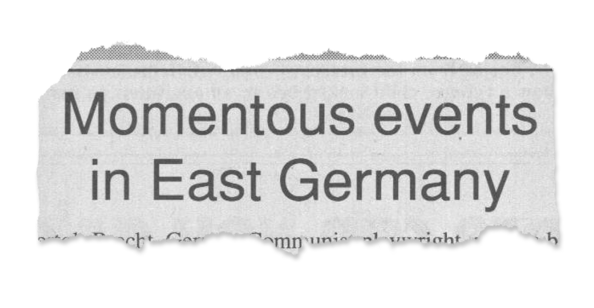 “Twenty-eight years after locking its citizens in one of the largest prisons ever constructed through the Berlin Wall, the East German regime has given in to the irresistible pressure of freedom.”