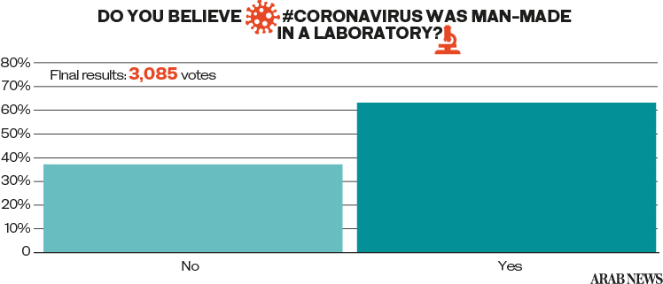 DUBAI: Nearly two thirds of people taking part in an Arab News Twitter poll say they believe the coronavirus was man-made.