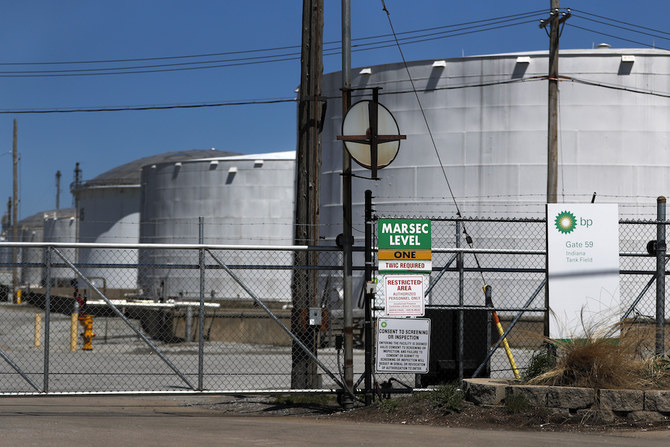 Petroleum storage tanks at the BP Indiana Tank Field. A global oversupply, reduced demand and lack of storage space lead to further turmoil on global crude markets Tuesday. (AP)