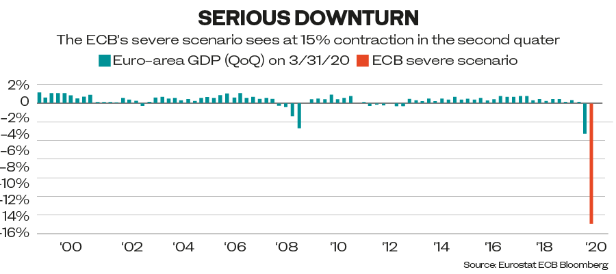 Decision making is less clear cut at the ECB than it is at the US Federal Reserve, because the eurozone consists of 19 countries with their own fiscal systems. However, both institutions showed a similar trajectory by announcing huge programs last month and only tweaking them at the margins this month, while indicating willingness to do more if necessary and emphasizing the importance of further fiscal stimulus.