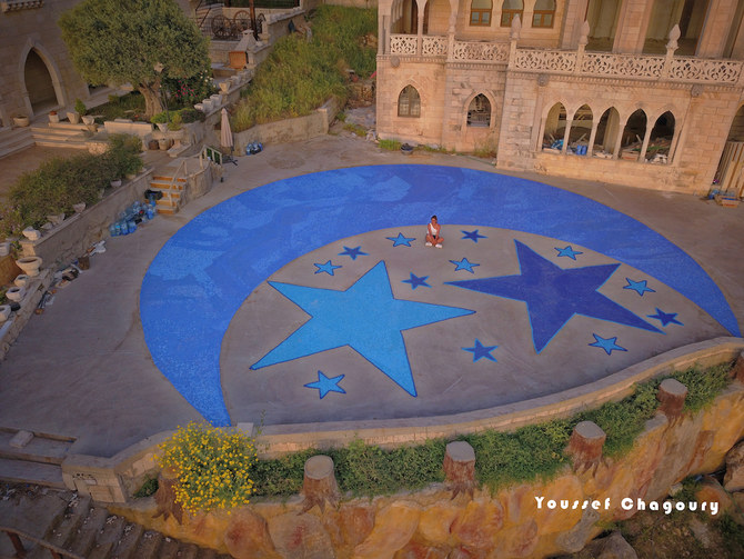 Caroline Chaptini, who is a Christian, said she decided to create the 240-square-meter artwork featuring the symbol of the Muslim holy month to celebrate the Eid Al-Fitr holiday, which marks the end of Ramadan, and highlight the unity of Lebanese people of all religions and sects.