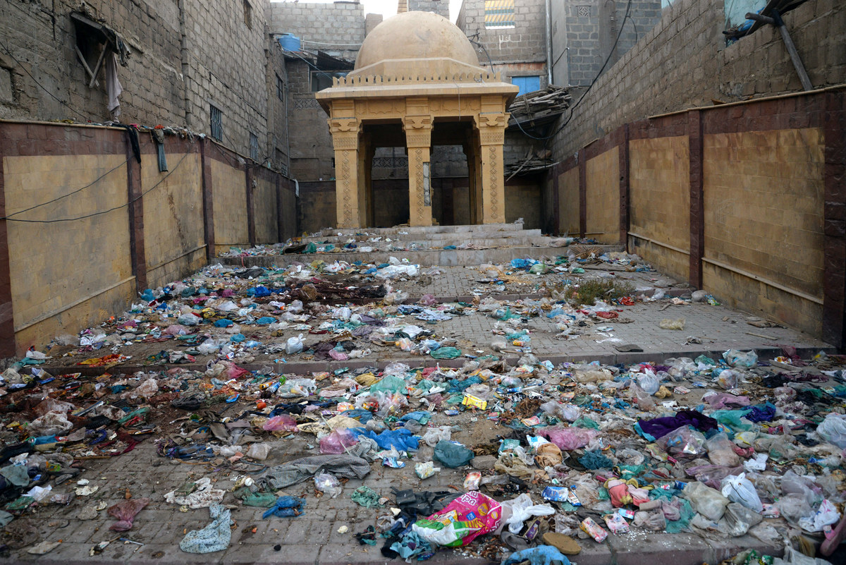 The mausoleum of Lady Phillis is hidden amid litter at the Gora Qabristan cemetery in Karachi on May 18, 2020. (AN Photo by S.A. Babar)