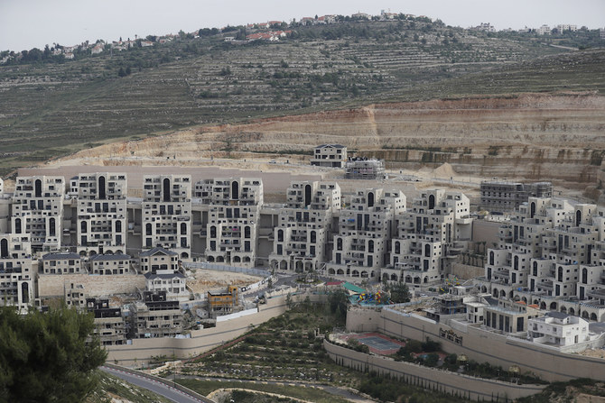 A picture taken on May 13, 2020 shows a partial view of the Jewish settlement of Givat Zeev, near the Israeli-occupied West Bank city of Ramallah. (AFP)