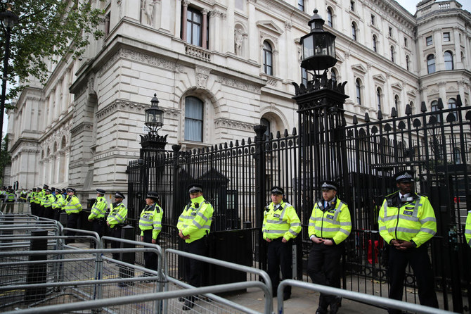 On Saturday, thousands of protesters had gathered in central London in a demonstration that was peaceful but that ended with small numbers of people clashing with mounted police near Prime Minister Boris Johnson's Downing Street residence.