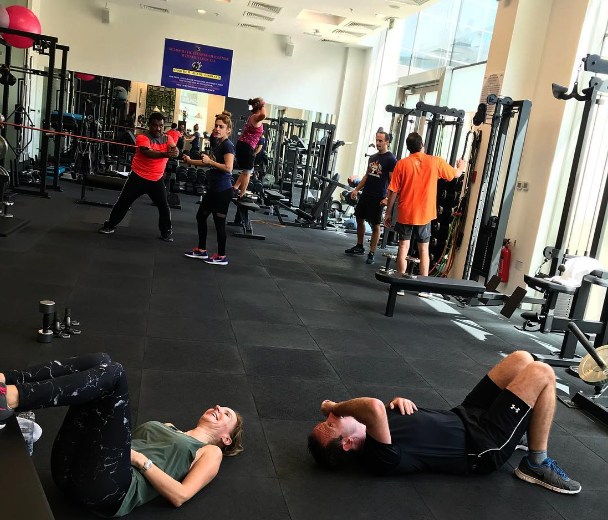In this October 17, 2017 photo, clients work out with trainers at Seven Gym where Pakistani Ghazi Karim is coaching, in Dubai, United Arab Emirates (Photo courtesy Ghazi Karim instagram).