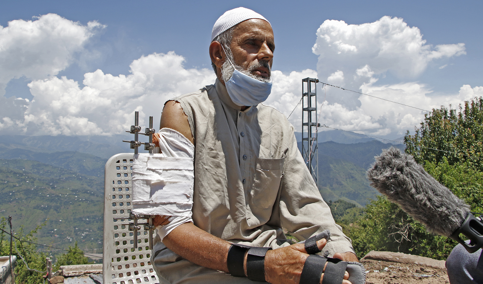 An injured man speaks to media in Chirikot Sector, Pakistan, on July 22, 2020. (AN photo)