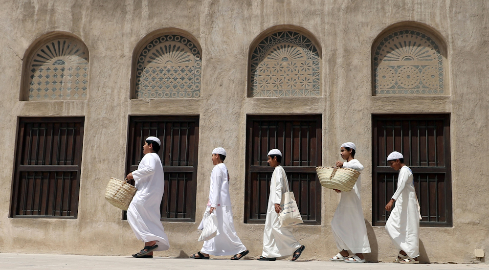 Emirati youths walk in Al Fahidi Neighbourhood, also known as Al Bastakiya, a historic district in Dubai, on April 26, 2018. (AFP/File Photo)