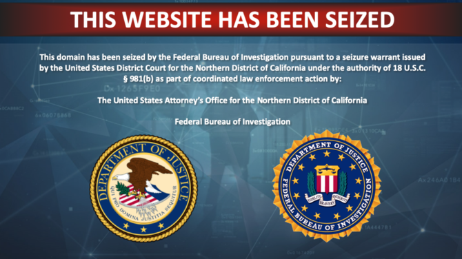 When individuals visit the 92 websites and domains, they are now greeted by a single-page graphic that declares them shut down and seized under American laws.