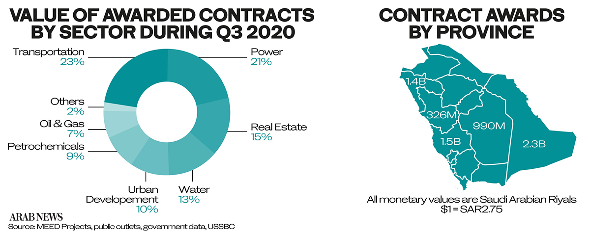 JEDDAH: The total value of construction contracts awarded in Saudi Arabia during the third quarter (Q3) of this year collapsed by 84 percent on figures for the same period in 2019 as the economic impact of the coronavirus disease (COVID-19) pandemic continued to bite.
