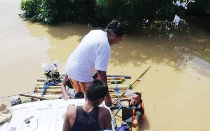 The 31-year-old officer, originally from southern Basilan province, called the Provincial Disaster Risk Reduction and Management Office to request a rescue boat, but all were already in use. Seeing water levels rising and desperate people unable to leave their houses, he gathered a group of local men.