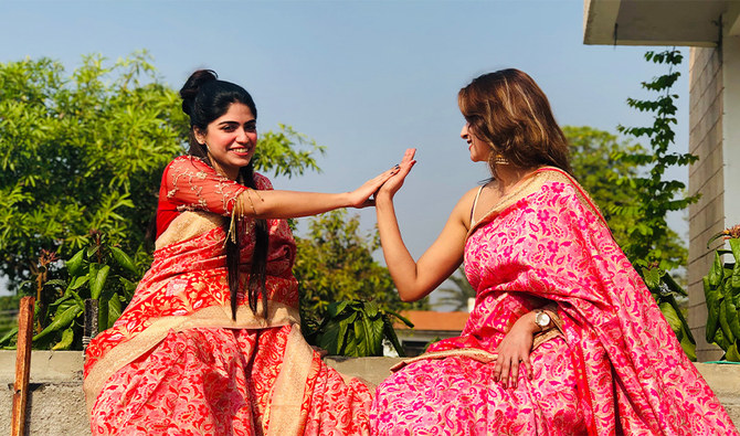 “The sari was something I wanted to bring back,” Nadeem told Arab News over the phone. “Our foremothers would wear these beautiful pieces while having a cup of tea and running errands, why shouldn’t we? From there, the idea for Hathghar began.”