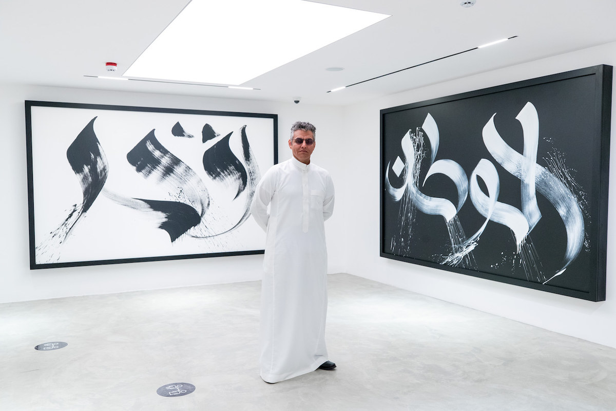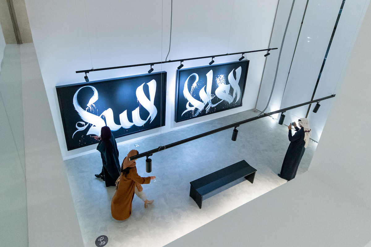 Alongside the artwork, a specially commissioned video to mark the country’s 90th National Day shows Saudi opera singer Sawsan Al-Bahiti performing a rendition of the Kingdom’s national anthem as Nugamshi creates his pieces.