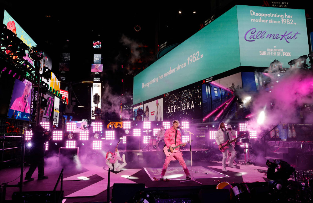 Singer Machine Gun Kelly performs in Times Square during New Year's Eve celebrations on Dec. 31, 2020 in New York City. (AFP / POOL / Gary Hershorn)