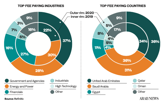 RIYADH: Saudi Arabia, along with the UAE, generated two-thirds of the investment banking fees in the Middle East and North Africa (MENA) last year, accounting for $382.9 million and $433.9 million, respectively, despite the slowdown as a result of the coronavirus (COVID-19) pandemic.