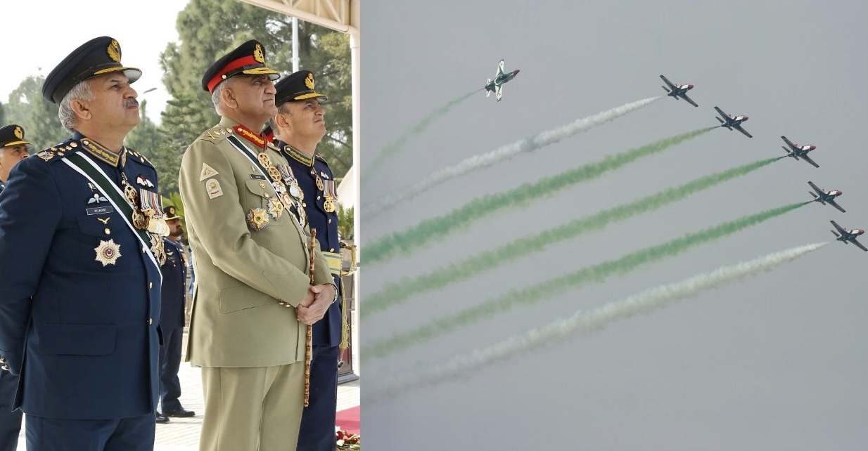 Chief of Army Staff General Qamar Javed Bajwa and Air Chief Marshal Mujahid Anwar Khan are witnessing a thrilling display of aerobatics by Pakistani pilots during the graduation ceremony held at the Pakistan Air Force Academy in Risalpur on Feb. 2, 2021. (Photo courtesy: Pakistan Air Force)
