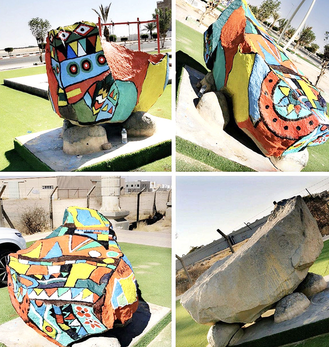 Maha Al-Kafi, armed with brushes and buckets of paint and inspired by the impressionist movement, has adorned rocks and boulders in Qassim, Al-Duwadimi and Taif with geometric and mural-like designs.