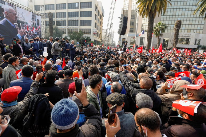 TUNIS: Tunisia’s biggest political party assembled an immense crowd of supporters in the capital on Saturday in a show of strength that could fuel a dispute between the president and the prime minister.