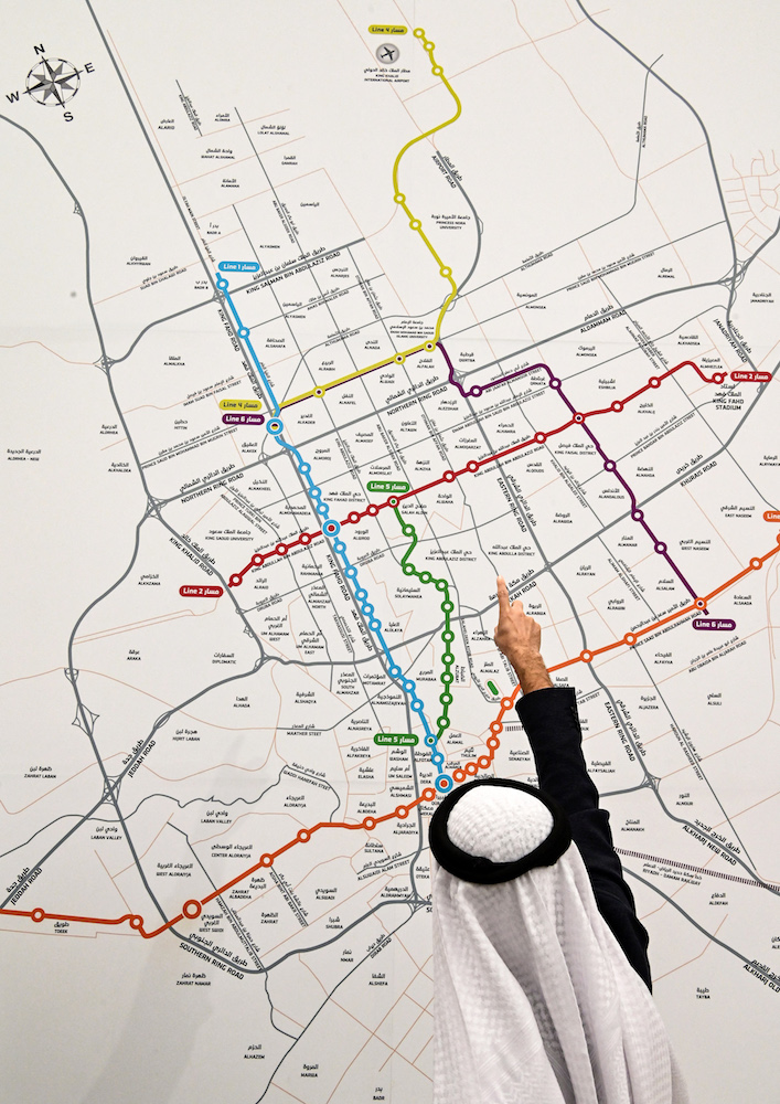 A man points at a map of the new Riyadh Metro in the Saudi capital on December 9, 2019. (AFP/File Photo)