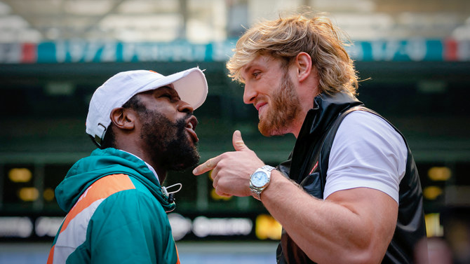 Floyd Mayweather is involved in a chaotic brawl during the build-up to next month's fight with Internet star Logan Paul as tempers boiled over at a photo-opportunity in Miami.