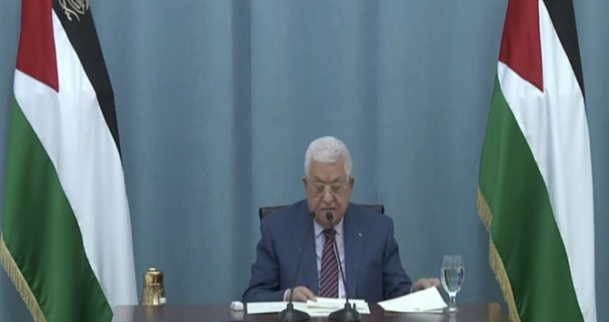 His comments came at the start of a leadership meeting at the presidential headquarters in Ramallah to discuss the repercussions of “Israel’s aggression toward the Palestinian people.”